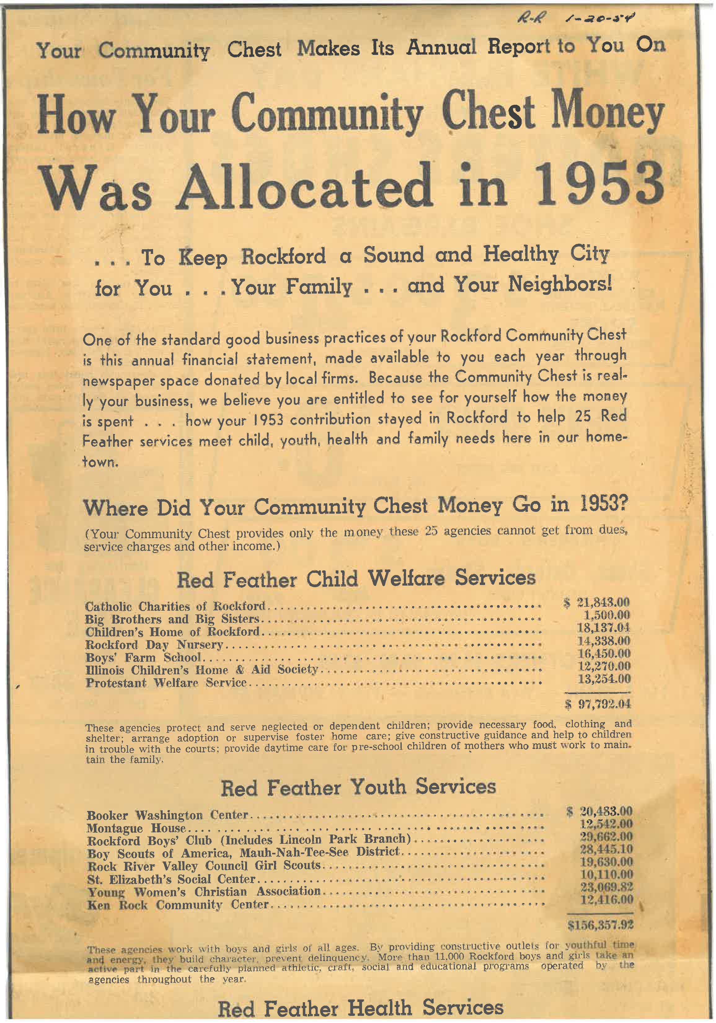 The Social Service Federation changes their name to "Rockford Community Chest" to conform to a nation-wide policy for similar organizations.